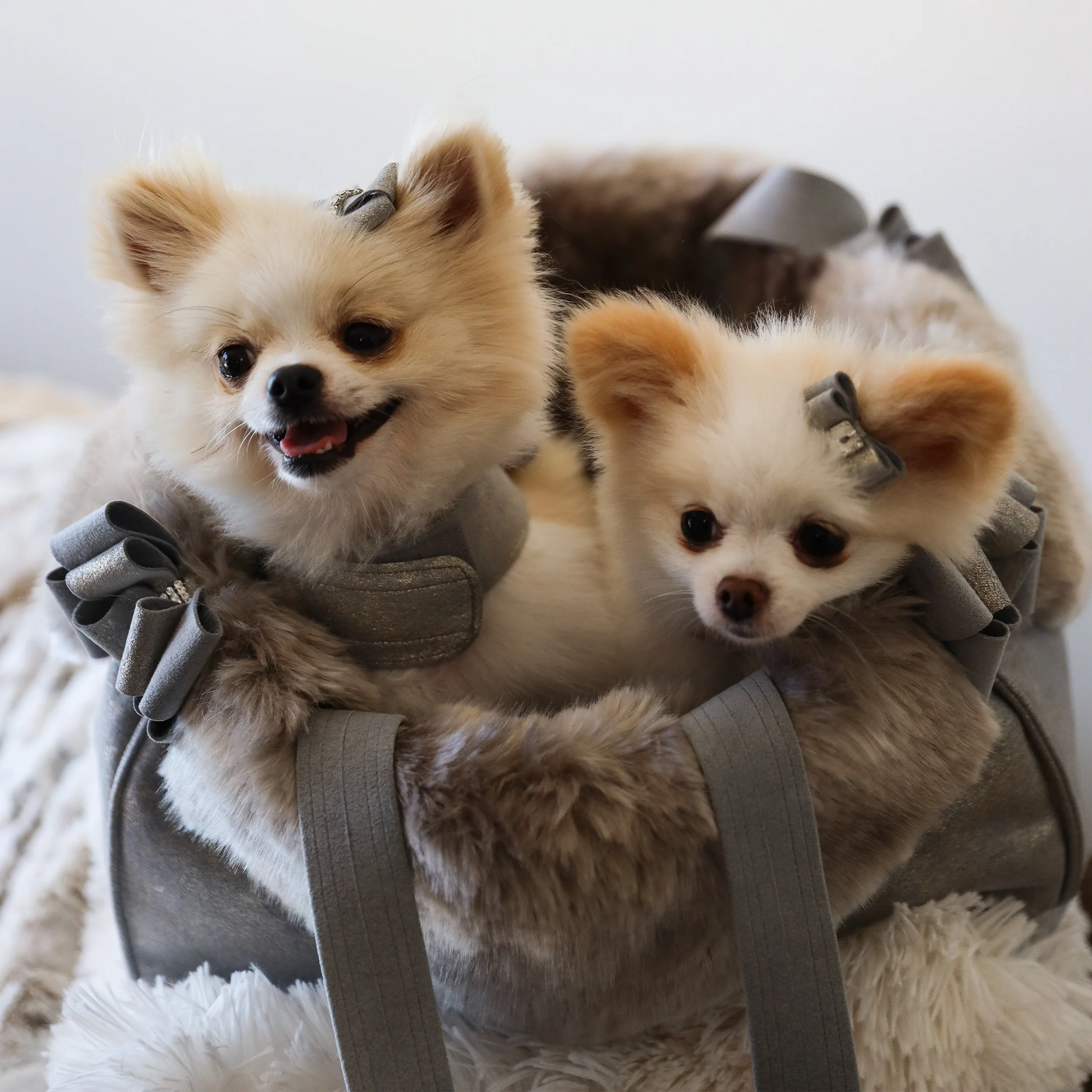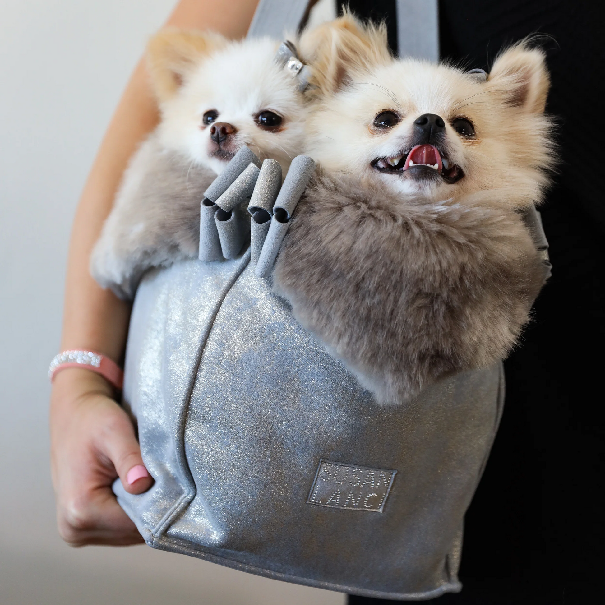 Lleve a su perro con un lujo y una belleza que seguro durarán. El exterior Glitzerati está hecho de auténtica tela Ultrasuede de calidad comercial para tapicería, importada de Japón. Un toque de brillo le da un toque de belleza aún mayor. Este efecto metalizado está incrustado en la Ultrasuede para que no se desvanezca ni se desgaste con el lavado. Al igual que nuestras Ultrasuede lisas, esta tela atemporal mantendrá su belleza con cada uso y lavado. Los lazos dobles Nouveau están decorados con los mejores cristales del mundo, fabricados en Europa. Incluye una manta transportadora de pelo a juego que mantiene a su perro abrigado y cómodo mientras viaja. Las dimensiones aproximadas son 20 cm de ancho x 20 cm de alto. La base de 30 cm de largo tiene un soporte oculto, flexible y no demasiado rígido. Las correas de 35 cm de alto son la altura ideal para transportarlo con comodidad. La capacidad es de aproximadamente 5,4 kg. Incluye un mosquetón para sujetarlo al collar o arnés de su perro. Puedes lavarlo con agua fría y luego colgarlo para secarlo.