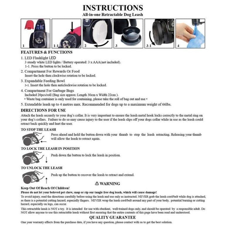 Descubra la comodidad y versatilidad de nuestra correa retráctil Ultimate 5 en 1 , diseñada para mejorar sus paseos diarios con su perro. Con su diseño repleto de funciones, esta correa ofrece la máxima comodidad, seguridad y libertad tanto para usted como para su compañero peludo. Es perfecta para perros de todos los tamaños y razas, y su diseño ergonómico reduce la presión en las mascotas y las manos, ofreciendo una combinación armoniosa de libertad y protección. Fabricada con nailon reflectante duradero y materiales niquelados inoxidables para una calidad duradera y una visibilidad óptima en sus aventuras.