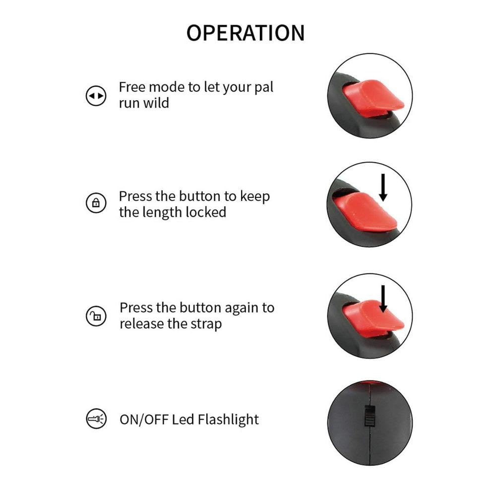 • Extensión automática de 4,8 metros: Disfruta de máxima libertad de movimiento. Correa antienredos de 360° con bloqueo de un solo botón para un control rápido y sencillo.
