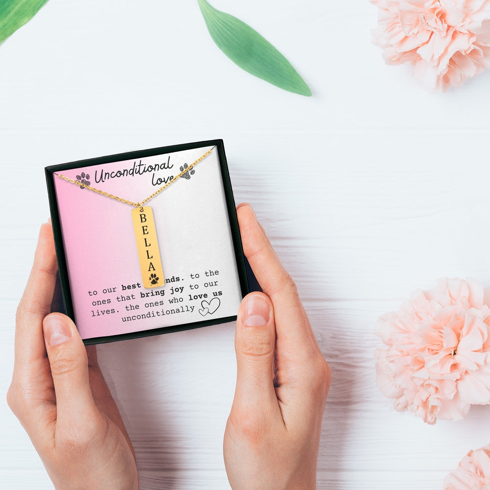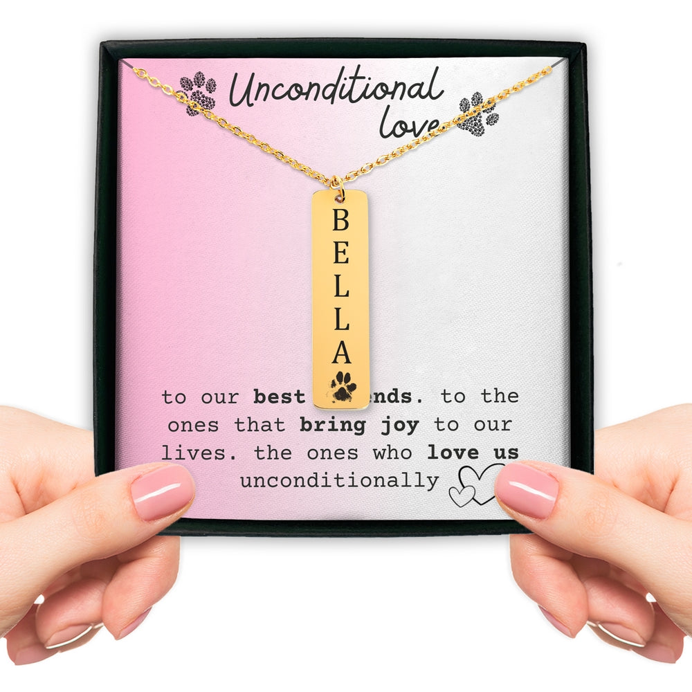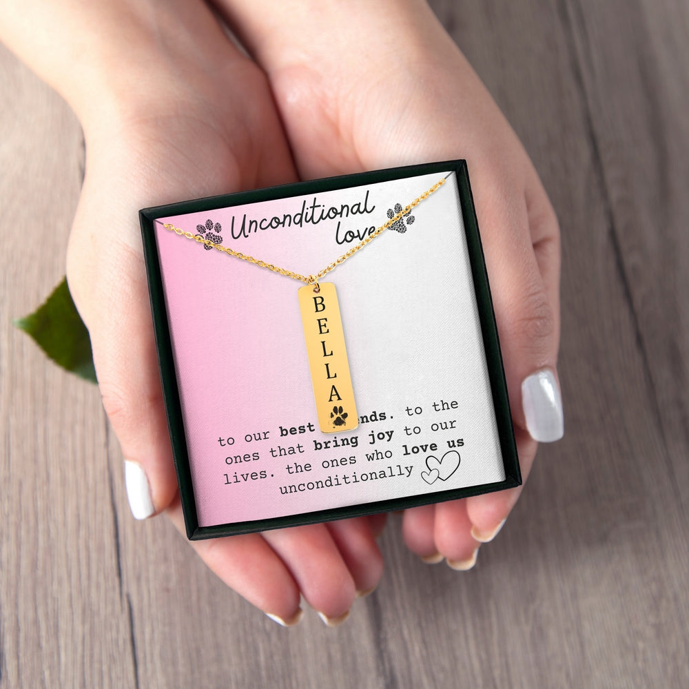 Engravable Pawprint Bar Pendant Bespoke Necklace