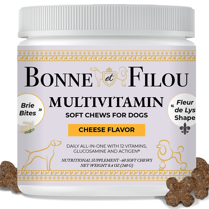 哇啦!你的毛茸茸的朋友绝对无法抗拒 Bonne et Filou 12 合 1 复合维生素软咀嚼片狗狗补充剂,它适合所有品种、体型和年龄的狗狗。C'est Cheese!这款美味的布里奶酪口味复合维生素咀嚼片,能让所有品种的狗狗从内到外都保持最佳健康状态,每个人都会心一笑。每日服用一次,即可保护狗狗的心脏、骨骼、皮肤、肠道和大脑,增强体力,减轻疼痛,这款美味的补充剂只需一口即可提供全方位的营养益处。美国制造,采用值得信赖的 100% 纯天然优质原料,促进每日健康。每日多效合一补充剂,含 12 种维生素、葡萄糖胺、益生菌、阿拉斯加野生鲑鱼油和 Actigen®